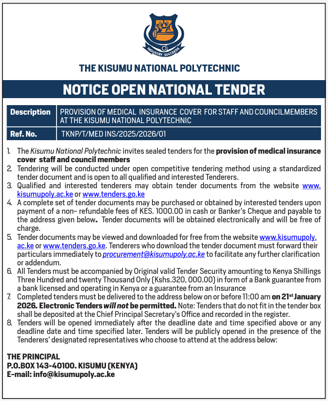 RESPONSES TO CLARIFICATIONS ON THE ADVERTISED TENDER FOR MEDICAL INSURANCE